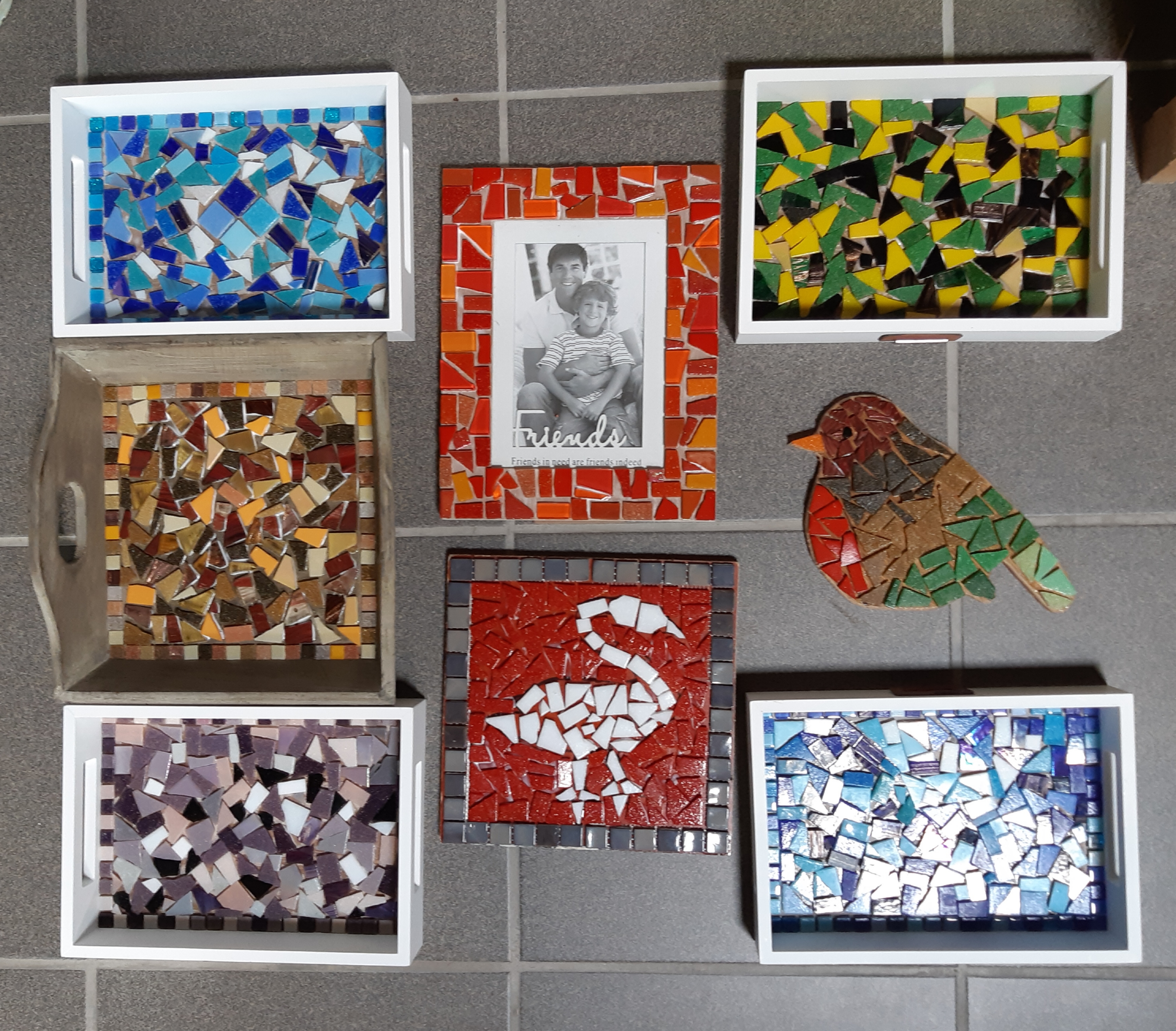 We gaan mozaïeken met keramische tegels van 15×15 cm en/of glasmozaïek en je kunt kiezen uit vele kleuren.