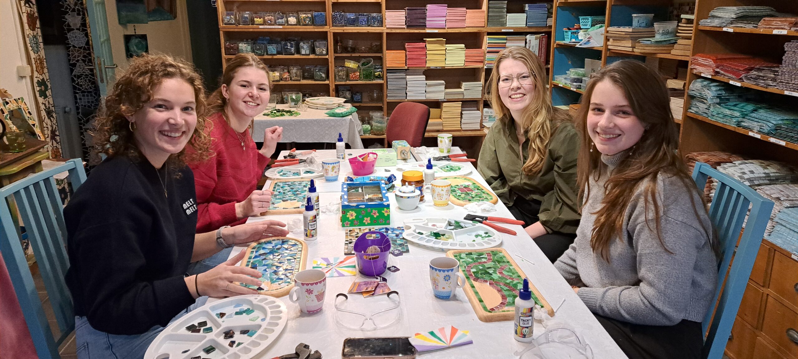 In deze workshop leer je meerdere technieken waarna je thuis ook zelfstandig kunt gaan mozaïeken. Materiaal hiervoor kun je direct inkopen in het atelier.