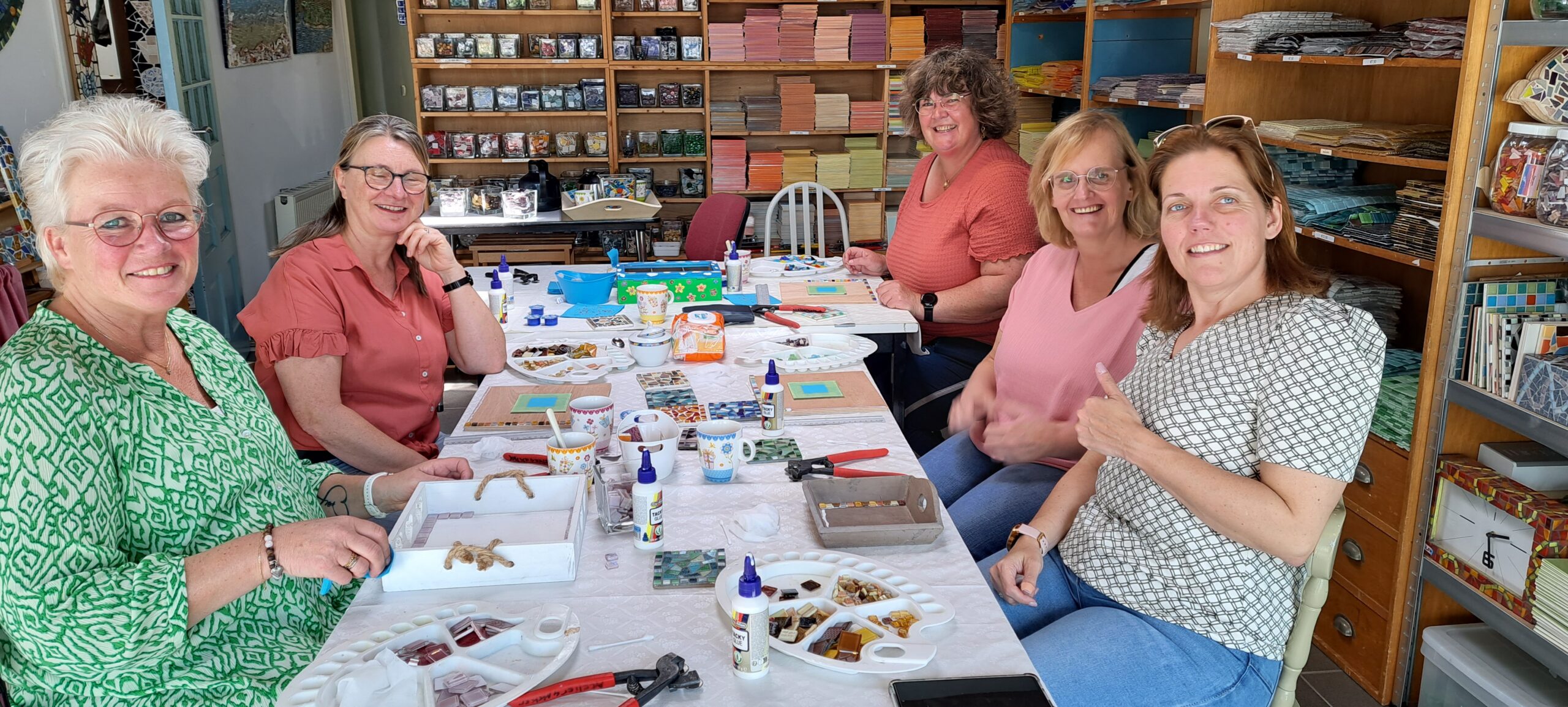Bij Atelier4akker in Huissen kun je 2 verschillende workshops volgen. Een korte mozaïekworkshop is altijd leuk en gezellig vooral als vriendinnenuitje, zussendag of vrijgezellenfeestje. Bij de 4 uur workshop leer je meerdere technieken waarna je thuis ook zelfstandig kunt gaan mozaïeken. Materiaal hiervoor kun je direct inkopen in het atelier.